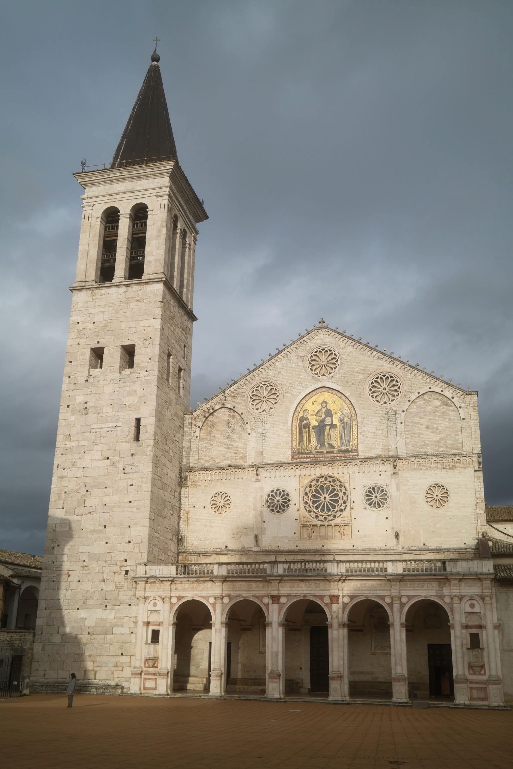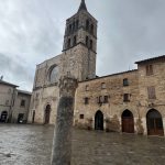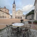 Nevaikščiojome su žemėlapiu rankose – tiesiog lėtai slampinėjome gražaus miesto gatvelėmis, visos jos kildamos aukštyn vedė iki nuostabios Basilica San Salvatore (UNESCO saugomas paminklas). Būtinai užsukite vidun – galima žvilgtelti į atidengtas senosios bažnyčios sienas su nuostabiausia tapyba. Didžiulėje aikštėje buvo tuščia. Per tas 30 min, kol ten sukiojomės, sutikome lygiai 9 žmones…Esu tikra, kad vasarą čia viskas kitaip. Išskirtinė vieta ir visas grožis mums vieniems. Malonu ir keista. Spoleto galite nukeliauti iki Romėnų teatro. Mes gi Piazza Mercato (Turgaus aikštėje) susiradome vienintelę viekiančią kavinukę ir išgėrėme espresso kartu su dūmą traukiančiais ir alų geriančiais vietiniais. Vienintelėje vietoje, kur girdėjosi žmonių kalba ir buvo bent kažkiek itališko triukšmo.