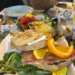 Mums labai tinka toks dienos režimas: nors Lietuvoje pusryčius visada praleidžiame, čia atvirkščiai – rytine kava su skaniausiu proschiuto, duonele, sūriais, pomidoriukais, kruasanais tiesiog neskubėdami mėgaujamės. Laikas ištįsta, niekur nereikia lėkti – keliaujame be plano, niekada nežinome, kur atsidursime. Umbrija nėra didelė, tad ir vairavimo nedaug. Po sočių pusryčių valgyti nenorime visą dieną (o ir nelabai būtų, kur: jei viena kita taverna ir dirba, tai tik pietų metui 12:00-14:00 arba vakarienei nuo 19:00), keliaudami pakramsnojame riešutų ar obuolių, o tikrajai maisto šventei jungiamės prie vietinių tik vėlai vakare. Nepaliauju stebėtis, kaip gausiai italai valgo ir kokie liekni yra. Mano skrandis atsisako priimti itališkas tradicijas. Jūs tik paskaitykite žemiau!