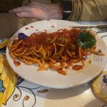 Perėję tiltą, sukome kairėn ir neužilgo akis užkliuvo už jaukios tavernos. Ją ir jūs tikrai pamatysite – pro langus matosi ir didelė vitrina su šviežiai pagamintais makaronais, kuriuos galima nusipirkti. Valgėme skaniai – Italijoje kitaip nebūna. Už nuostabią vakarienę dviems su vynu ir netgi desertu (privalėjome paragauti tiramisu paskutinę kelionės dieną) sumokėjome 52 eur.