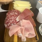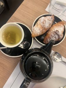 Niekur neskubame – pusryčiaujame ilgai: gauname dešrytės, sūrio, tik ką iškeptos duonos, jogurto, kavos ir, žinoma, kruasanų.