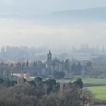 Pradėti rekomenduoju nuo tos Asyžiaus pusės, kur yra garsioji XII a. San Damiano bažnyčia su vienuolynu – viena svarbiausių dvasinių vietų netoli Asyžiaus (sakyčiau, Asyžiuje), glaudžiai susijusi su Šv. Klara ir pranciškonų judėjimo pradžia. Kilsite į kalną ir nuorodos atves į San Damiano parkavimo aikštelę – jei vietos čia nebus, dar šiek tiek pavažiavus aukštyn bus didesnė, kur atvyksta turistiniai autobusai. Drąsiausi gali kilti automobiliu dar aukščiau ir mašiną palikti jau visai prie įėjimo į miestą – tas parkingas vadinasi Matteoti. Net ir žiemą atvykus mašinų čia netrūko, bet vietą radome.