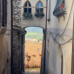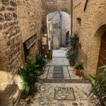 Apie 18 km nuo mūsų namų – Spello. Kai kam jis dar gražesnis ir jaukesnis, nei Spoleto. Spello labai gerai matomas nuo automagistralės – naktį jis atrodo, kaip miestukas iš pasakos. Tarytum stebuklingoji Narnija. Rytą šviečia saulė, – laukia nuostabi diena. Nors pamėginome kilti maksimaliai į viršų, bet supratome, kad bus keblu, nes kelio ženklai čia palankūs tik vietiniams. Bet miesto apačioje yra didžiulės aikštelės – tupdome ten savo Fiatą, mokėti nereikia. Išlipame ir intuityviai keliaujame aplink miestą, kol pasiekiame didžiuosius vartus – einame vidun ir visąlaik kylame.