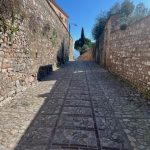 Kadangi žiema, galėjome ramiausiai įvažiuoti į patį kaimelį, nors ženklas ir rodė, kad eismas ribojamas. Buvome dar tik „vienos nakties” turistai – nepatyrę. Nedrįsome sukti pro tą eismą ribojantį ženklą. Užvažiavome į naująją miesto dalį aukščiau, sekdami parkavimo ženklus ir ten tuščiame parkinge palikome mašiną. Išlipome ir įkvėpėme oro – po snieguoto ir minusinio Vilniaus čia mus maloniai glostė plius 14 laipsnių šiluma. Žemyn iki senojo miesto ant kalvos leidomės pagrindiniu keliu apie nepilną kilometrą (vėliau tiek pat kilome – nesudėtinga) ir ten įžengę supratome, kad sezonas ne turistinis ir ramiausiai galėjome mašiną palikti prie miestų vartų.