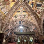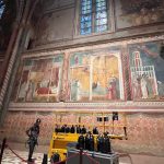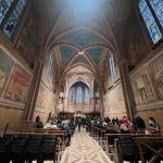 Kiek pasidairius į nuostabius Umbrijos slėnius nuo bazilikos aikštės, reiktų grįžti iki pagrindinės aikštės ir keliauti priešingon pusėn – garsiosios Šv. Pranciškaus bazilikos link. Jei kada pagalvosite, kad galbūt esate ne tiek tikintis ir ši vieta ne jums – persigalvokite. Pamatysite ir pajausite Asyžių, net neabejoju. Šimtmečius žmonių maldos, šventųjų pasišventimai šiai vietai suteikė sakralumo, kuris tarytum sklando ore – ties kiekviena freska, ties kiekvienu kryželiu. Pati bazilika yra kelių aukštų – apatinė ir viršutinė. Apatinės rūsyje pasiruoškite eilėms prie Šv. Pranciškaus Asyžiečio kapo. Jo gyvenimo istorija verta paskaityti – žmogus, galėjęs gyventi ramų ir pasiturintį gyvenimą, pasirinko asketizmą ir atsidavimą žmonėms.