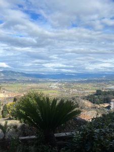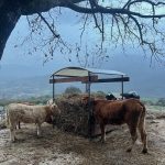 Grįžome iki automobilio ir sukome į savo „Agriturismo La Cerra” – italai apsimelavo. Nuo Tivolio ta mūsų pasirinkta sodyba tikrai ne 3-4 km, o kokie 8-9 ir važiuoti teko apie 15-20 min. Visąlaik siauru kalno šlaito keliuku. Pasiekėme milžinišką teritoriją, kur ganėsi karvės, aplink jas trynėsi veršiukai, vaikštinėjo avys ir ėriukai. Girdėjosi gaidžiai. Garduose matėsi triušiai. Tikras, nesuvaidintas agroturizmas. Iki registratūros pastato teko pravažiuoti pro du atitvarus (labai saugu, suprask), o ten….barikados, galybė išmėtytų daiktų, išvartyti baldai, išgriuvę medžiai, pabirusios susipynusios medžių šakos…Vos ne vos įžiūrime ženklą „Reception”. Kryptį matome, bet ten nusigauti tiesiog neįmanoma! Laimei, iš kažkur atsiranda gerai nusiteikęs italas ir pakviečia mus užeiti pro šonines pastato duris, – rytoj čia bus filmuojamas Netflix serialas, todėl tenka pakentėti. Na, įdomu įdomu…