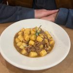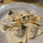 Susiradome kavinukę leidžiantis lifto link „Osteria Valle” – netoli centrinės aikštės. Buvome vieni, kol prisijungė porelė italų. Valgėme lęšių sriubą, gnocchi ir risotto su žalumynais. Maistas buvo labai skanus ir gana nepigus. Kartais pagalvojame, kad mes sumokame ir už visas tas tuščias vietas tratorijose, keliaudami žiemą…Negausi vakarienė dviems kainavo 68 eur.