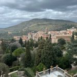 Ilgai ilsimės, dar tenka padirbėti, pusryčiaujame ir susikurpiame preliminarų dienos planą. Mūsų kryptis – Asyžius, kur pasirinkome praleisti 3 naktis toje pačioje vietoje, kur buvome ir vasarą, – ant kalvos šlaito įsikūrusiame „B&B Cantico Delle Creature” (Via Cantico Delle Creature 5, 06081, Assisi, Italy). Tada pavergė vaizdai, lokacija ir miniatiūrinio namelio jaukumas – norėjome čia grįžti. Teisybės dėlei, vasarą čia man kur kas labiau patiko, nes didžiąją laiko dalį leidome prie baseino ar terasoje. Dabar, žiemą, kambariuko mažumas ir uždaryti langai (jie Italijoje visada ir visur uždaryti) gerokai slėgė. Kitam kartui ne sezonui ieškočiau kažko didesnio – erdvesnės patalpos leistų jaustis komfortiškiau, net ir tada, kai langai užverti langinėmis. Laimingieji italai turi vaizdus į kalnus, galėtų net iš lovos į juos žiūrėti, bet …negali. Nes pateisinamas vasaros įprotis gyventi kurmio gyvenimą, deja, tęsiasi ir rudenį, ir žiemą. Todėl žvilgsnis atsitrenka į aklinas sienas.