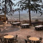 Papuolėme į gigantišką kaimo turizmo sodybą – esu tikra, kad vasarą čia sunku gauti vietą. Prikepta nameliukų skirtinguose kalvos aukščiuose, pagrindinis pastatas – vasarą, matyt, veikia kaip restoranas, o dabar mus priims tik ryto pusryčiams. Atvykę negavome nieko – net kavos, nors aparatas stovėjo didžiulis. Mūsų nameliukas buvo dviejų kambarių – tie, kas darė remontą, neturėtų ramiai miegoti: kuomet bandau apeiti miegamojo lovą, tas, kas joje tuo metu guli, sulig kiekvienu žingsniu skrenda lubų link. Taip siūbuoja medinės grindys. Įrengta tarytum ir gražiai, bet neišbaigta ir laiko jaukumui sukurti pritrūko. Norėjosi tik įėjus bent baldus perstumdyti, susiturėjome. Bet bent jau buvo šilta, o išėjus iš namelio vaizdai vėrėsi nuostabūs.